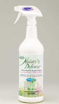 スポンジ、または清潔な布をネイチャーズディフェンスで湿らし、馬の肢、腹部、首、顔の周りに流布します。目の周りや粘膜には使用しない事。毎日、または必要に応じて適宜流布してください