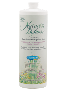 スポンジ、または清潔な布をネイチャーズディフェンスで湿らし、馬の肢、腹部、首、顔の周りに流布します。目の周りや粘膜には使用しない事。毎日、または必要に応じて適宜流布してください
